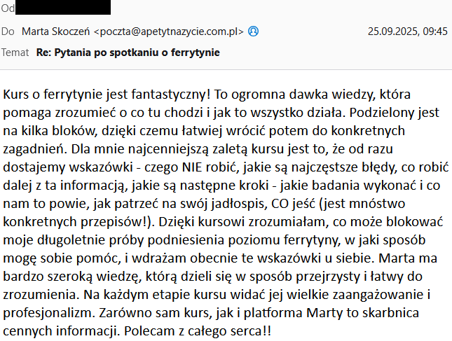 Zobacz, co o kursie na temat ferrytyny napisały uczestniczki: