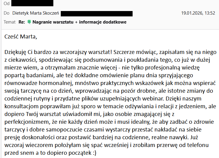 - Sesja pytań i odpowiedzi: odpowiem na Twoje pytania, abyś mogła od razu wdrożyć wskazówki w swoje życie.
